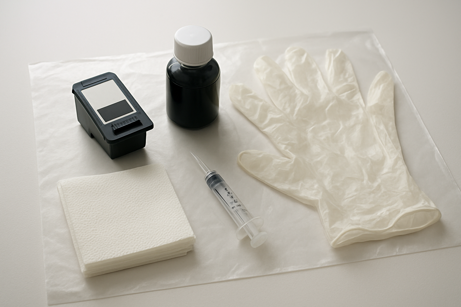 Phễu nhỏ hoặc ống tiêm: Dùng để đổ mực chính xác, tránh tràn ra ngoài