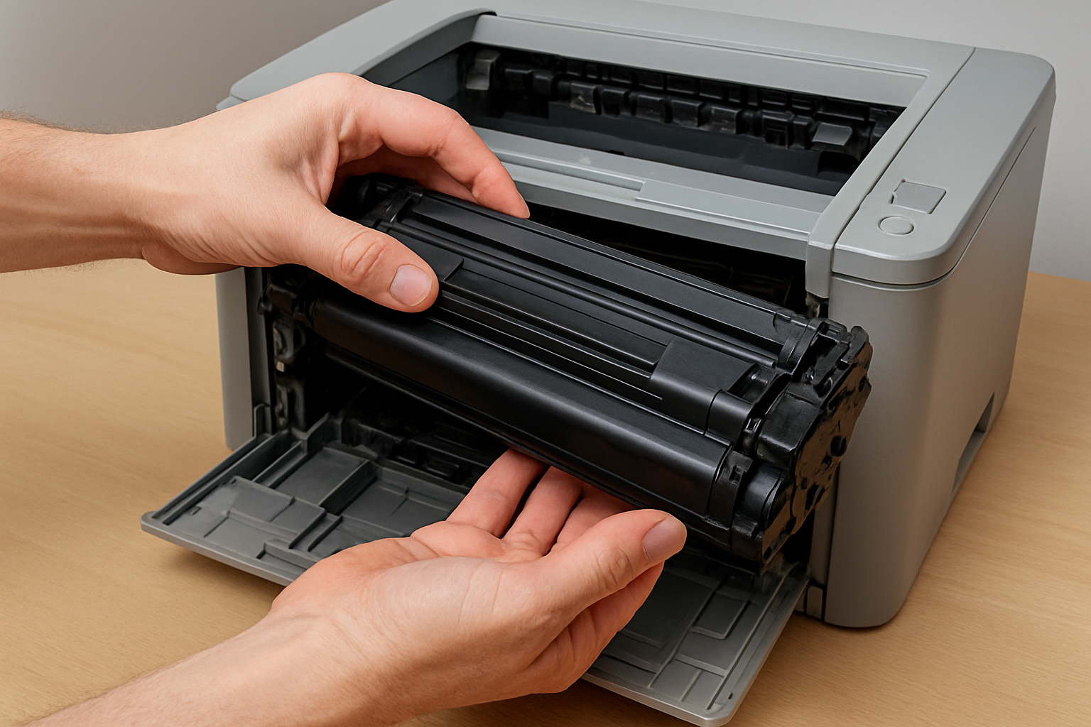 Lắp hộp mực vào máy in đúng vị trí và chắc chắn