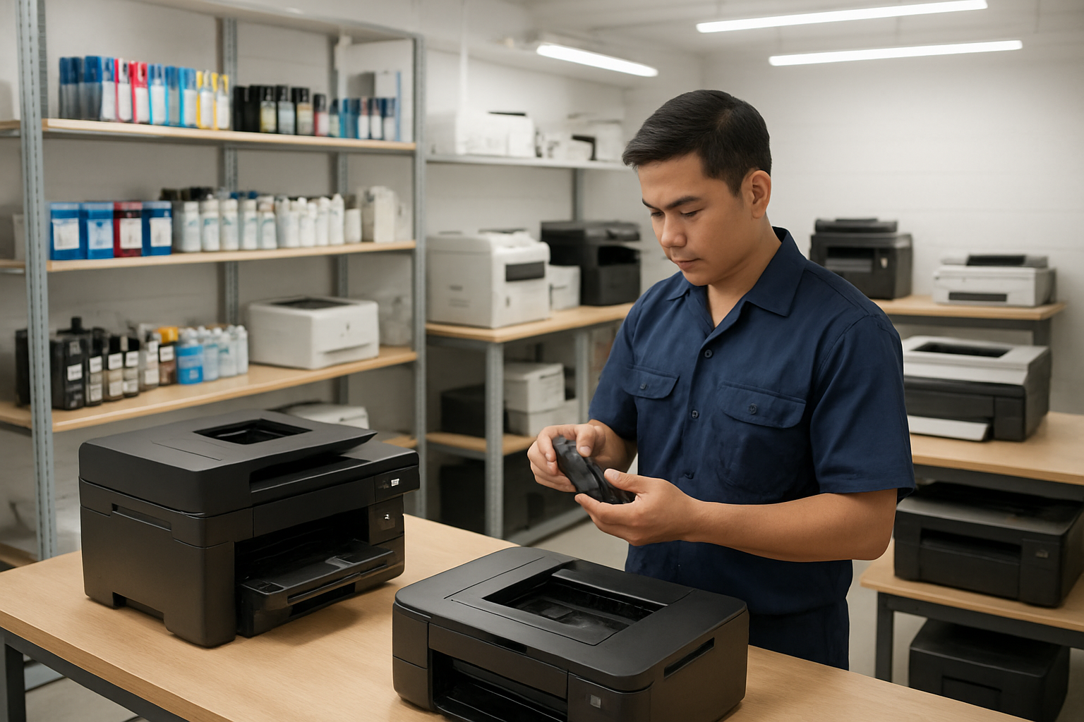 Dịch vụ máy văn phòng Nguyễn Du không chỉ dừng lại ở việc đổ mực mà còn cung cấp tư vấn toàn diện về cách sử dụng và bảo trì máy in đúng cách. Khách hàng được hướng dẫn: