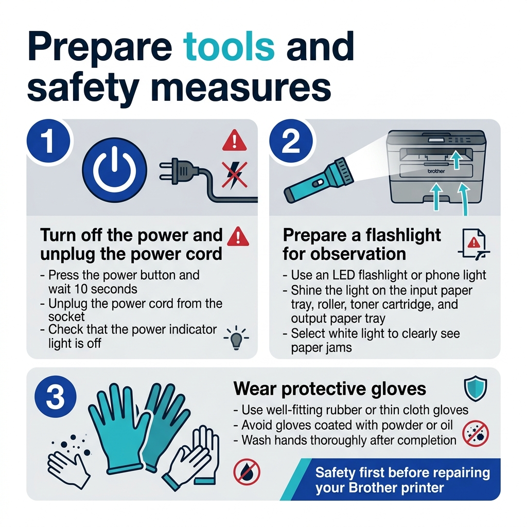 Chuẩn bị công cụ và biện pháp an toàn và xem hướng dẫn sửa máy in Brother kẹt giấy