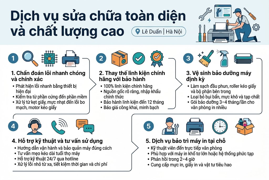 Chẩn đoán lỗi nhanh chóng và chính xác khi sửa máy in tại đường Lê Duẩn