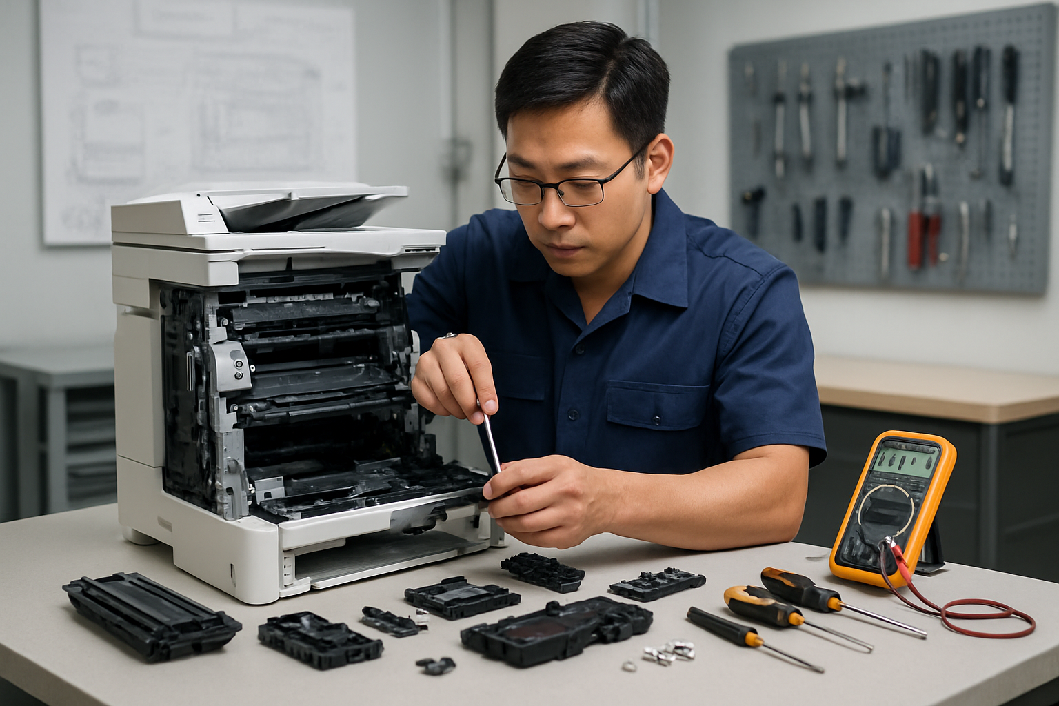Quá trình chẩn đoán bao gồm việc test các chức năng cơ bản như in thường, in màu, scan và photocopy (với máy đa chức năng). Trung tâm sửa máy in ở đường Thanh Nhàn uy tín sẽ sử dụng các công cụ chuyên dụng để đo điện áp. Kiểm tra board mạch và phân tích mã lỗi hiển thị trên màn hình máy.