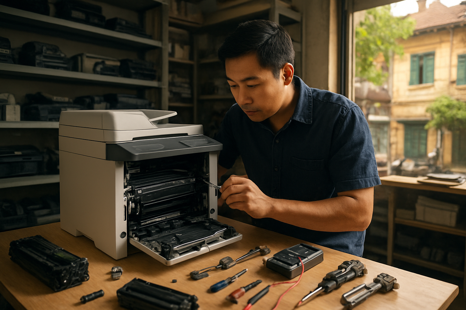 Bài viết này sẽ giúp bạn nhận biết các dấu hiệu máy in cần sửa chữa ngay lập tức. Để tránh hỏng hóc nặng hơn. Chúng tôi cũng sẽ chia sẻ về quy trình sửa chữa máy in hiệu quả từ những thợ sửa chuyên nghiệp. Cùng với bảng giá sửa chữa máy in cạnh tranh nhất trong khu vực Lạc Trung.