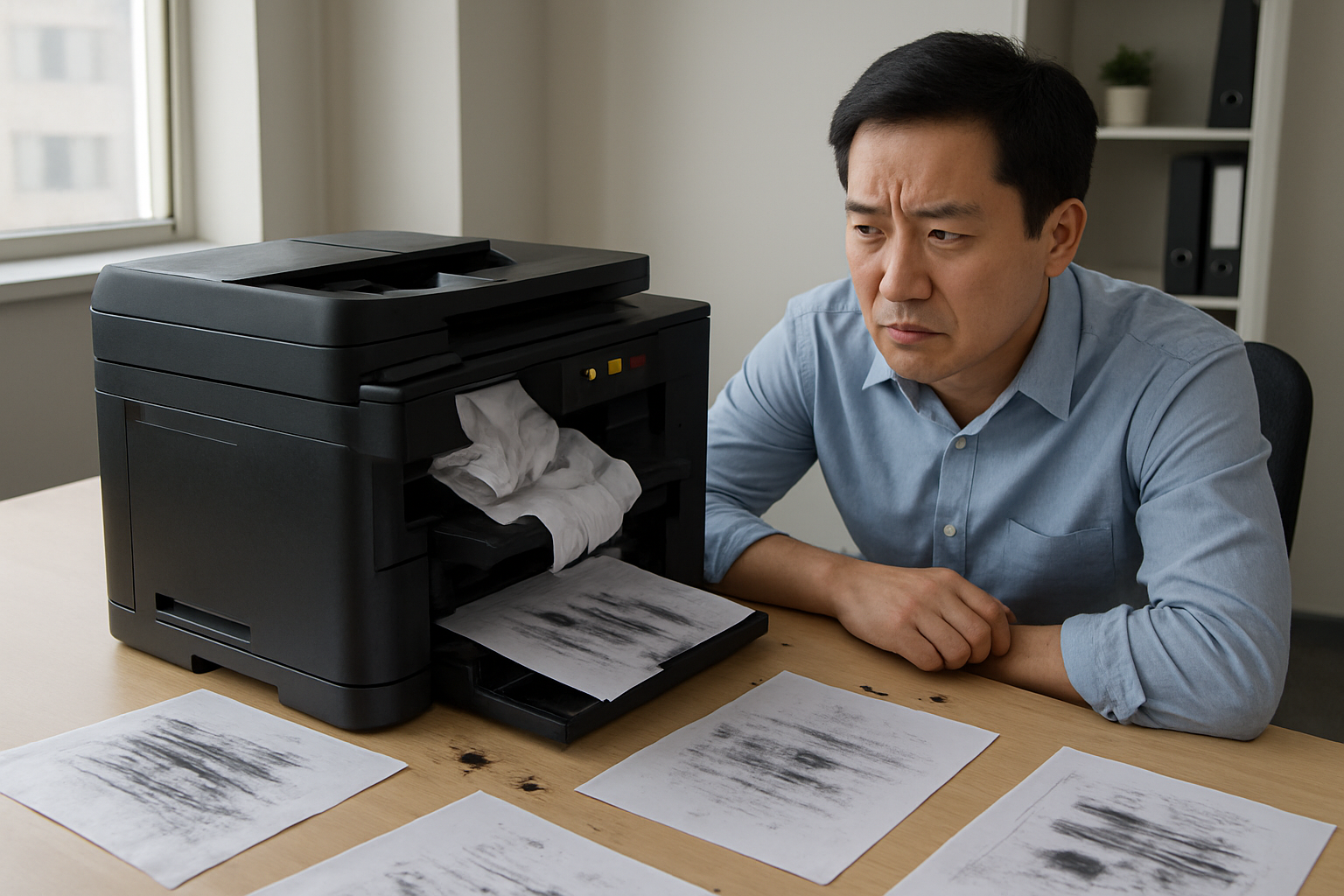 Văn bản xuất hiện mờ nhạt, có vệt sọc hoặc thiếu màu là dấu hiệu rõ ràng nhất cho thấy máy in cần được can thiệp ngay. Sửa chữa máy in tại Lạc Trung Hà Nội cho thấy 70% các trường hợp này xuất phát từ hộp mực cạn, đầu phun bị tắc hoặc drum bị mòn. Các vạch kẻ ngang xuất hiện trên giấy thường báo hiệu trục lăn bị bẩn hoặc hỏng. Khi chữ in bị nhòe hoặc có hiện tượng chảy màu. Đây là lúc hệ thống cung cấp mực gặp trục trặc cần sửa chữa chuyên sâu.